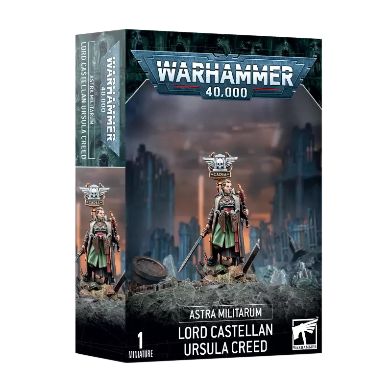 Ursula Creed est la Seigneure Castellane de Cadia, et bien que sa planète n’existe plus, son poste et son devoir restent parfaitement intacts. C’est une stratège inflexible, héritière du légendaire général tombé avec son monde, et symbole vivant de la résilience des armées de Cadia. Le commandement admirable d’Ursula Creed, peaufiné au fil de longues années, lui a permis de mener les armées impériales jusqu’à de nombreuses victoires contre les ennemis qui menacent l’Imperium.
