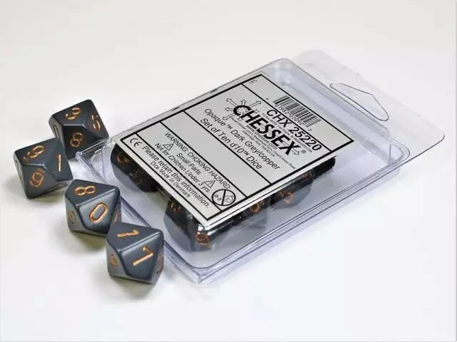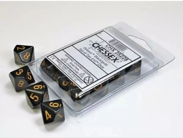 Set de 10 dés à 10 faces (D10) CHESSEX. Plusieurs couleurs disponibles !
