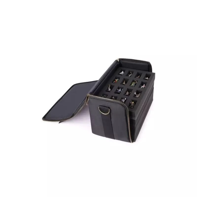 Les parois matelassées du sac offrent une protection supplémentaire contre les chutes, les chocs, les rayures et les intempéries. L’extérieur est fabriqué en nylon de haute qualité à la texture robuste, avec des fermetures à glissière et des ferrures en laiton. La bandoulière vous permet de porter le sac de manière confortable et pratique. Que vous vous rendiez dans un donjon, une escarmouche ou une session de jeu de rôle, vous aurez toujours vos personnages et créatures préférés à portée de main grâce à la sacoche pour figurines ENHANCE RPG.