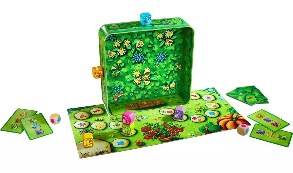 Avec de la chance aux dés et un peu de tactique pour déplacer les escargots, avancez-les jusqu’au podium des vainqueurs pour obtenir le plus de points et remporter la partie ! Avec variante (verso du plateau de jeu).