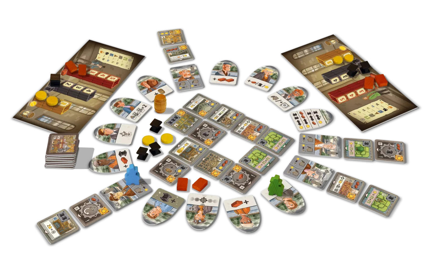 Des règles de placement régissent la construction de vos édifices ! Ils doivent être adjacents à un bâtiment déjà existant sans dépasser les limites de la ville (rectangle de 4 x 5 tuiles). Il en existe plusieurs sortes dans le jeu, chacun avec un effet spécifique : les Usines fournissent des ressources à leur propriétaire à certains moments du jeu, les Banques rapportent des points de victoire supplémentaires par marchandises ou usines possédées, les Parcs donnent des points selon le nombre de Parcs du joueur, etc. Il y a souvent une histoire de combo donc soyez vigilants et prévoyants !
