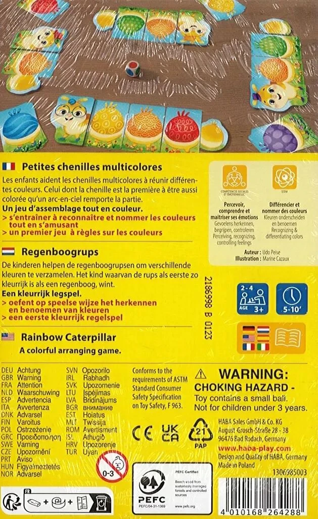 Découvrez le jeu Petites chenilles multicolores de Haba, un premier jeu de collecte coloré pour les enfants à partir de 3 ans sur les couleurs.