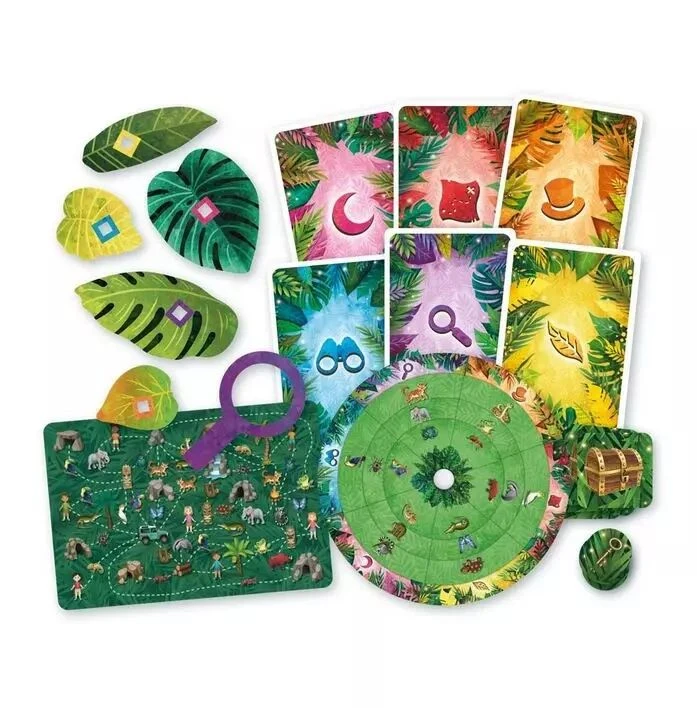 Vous avez découvert une île déserte ! Vous décidez d’explorer les lieux et de vous enfoncer dans la jungle touffue. Mais, qu’est-ce que… ?! Ici, en plein coeur de la forêt tropicale, vous tombez sur neuf mystérieux coffres ! Seraient-ce des trésors ? Vous vous approchez, mais vous entendez soudain des bruits étranges… Vous regardez autour de vous : plein de petits yeux vous observent depuis les sous-bois. Un toucan coloré s’élance dans les airs et vient se poser sur l’un des coffres : « Bonjour et bienvenue, jeunes aventuriers ! croasse-t-il. Vous avez découvert l’Île aux Énigmes ! Si vous parvenez à résoudre nos énigmes, vous pourrez ouvrir nos coffres au trésor… » D’autres animaux s’avancent vers vous. Vous avez 6 énigmes à résoudre ensemble ! Chaque énigme résolue vous donnera accès à l’une des 6 clefs dorées qui permettent d’ouvrir les coffres.Réussirez-vous à résoudre toutes les énigmes ? Quels trésors se cachent dans ces coffres ?
