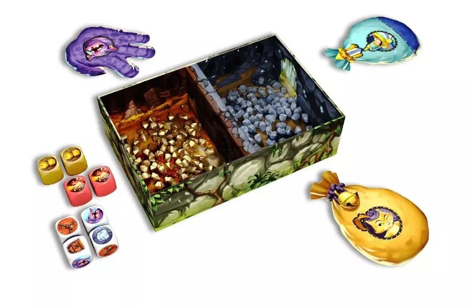 À ton tour de jeu, lance les dés de la Grotte de Diamants. Pour chaque face Diamant qui apparaît, récupère un Diamant. Attention, lorsqu’une face Troll apparaît, le dé est bloqué, tu ne peux plus le rejouer. À chaque lancer, tu peux décider de continuer à ramasser des trésors ou de t’arrêter afin de valider tes gains. Si tous tes dés sont bloqués, tes Diamants sont récupérés par le Troll. Si tu tombes sur les faces Clé et Porte, tu entres dans la Salle du Trésor. Lance alors les dés de la Salle du Trésor et récupère le maximum de Pépites d’or avant que les autres joueurs ne réveillent le Dragon. Si par malheur ils y parviennent, ils se partagent alors ton butin et celui du Troll !