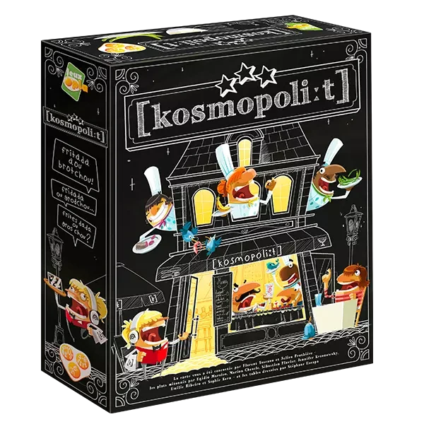 Chaque Cuistot gère des types d’aliments en ayant les tas de cartes correspondant, et est aussi le cuisinier expert d’un continent : il a donc toutes les cartes de ce continent. Chacune de ces cartes correspond à une langue, et comprend les 6 plats que l’on sert dans cette langue. Chaque plat est écrit par une translitération (tel qu’on l’entend en français), et accompagné du nom et dessin d’un de ses ingrédients.