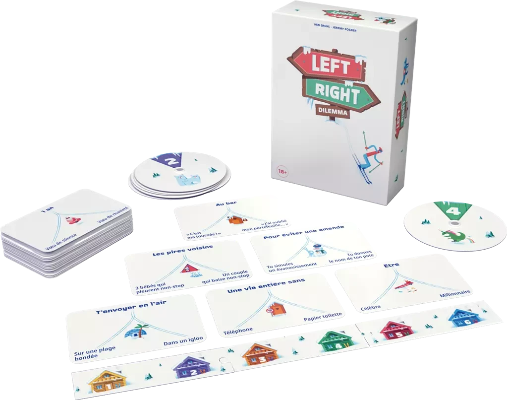 Left Right Dilemma est un jeu d’ambiance coopératif pour adultes qui vous fera découvrir les préférences inavouées de vos amis (et parfois inavouables).