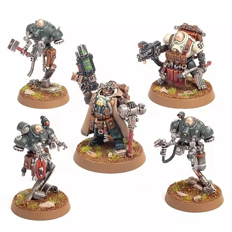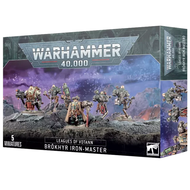 Ce kit plastique permet d’assembler un Maître-fer Brôkhyr, un ingénieur de terrain de haut rang accompagné de son escorte. Armé d’un tromblon à gravitons et d’un marteau à gravitons de sa propre création, le Maître-fer affiche son talent par les nombreux outils accrochés à sa combinaison, panoplie qu’il divise entre ses quatre aides. Un Assistant Cognat de Fer fiable porte quantité de matériel supplémentaire dont une découpeuse à faisceau laser, et trois E-COG flottent en portant des outils spécialisés : une torche à plasma, des bras manipulateurs et un pistolet bolter modèle Autoch. Le kit comprend un viseur multispectre pour le Maître-Fer, qui peut être porté sur les yeux ou relevé sur le front.