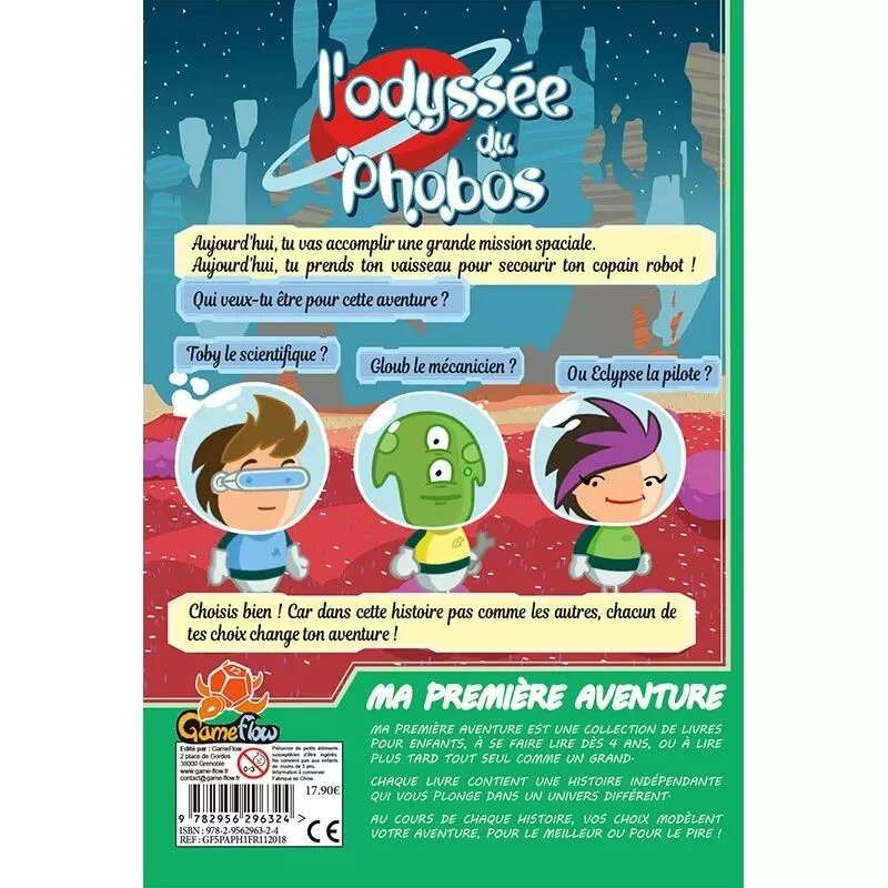 Ouvre le livre et choisis ton personnage : Toby : le scientifique curieux, Gloub : le mécanicien Lunien, Eclypse : la pilote tête brulée.