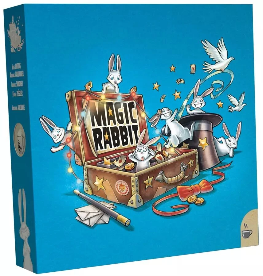 Dans Magic Rabbit, à chaque partie, 1 à 4 joueurs coopèrent pour remettre, dans l’ordre, les tuiles Lapin préalablement placées cachées,en ligne, recouverts parles tuiles Chapeau visibles et des Colombes. Cela en 2min30. Ils devront coopérer sans communiquer entre eux. À son tour, un joueur doit faire une action parmi 3 possibles :
