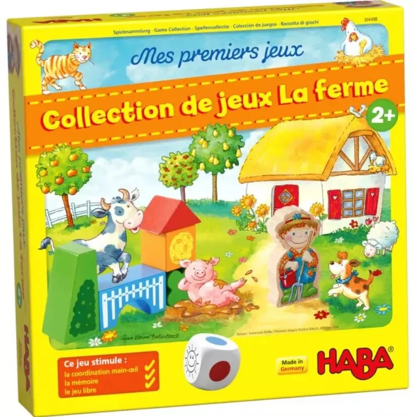 Cette collection de jeux polyvalente contient tout ce qui est amusant pour les enfants à partir de 2 ans. Avec le matériel de jeu soigneusement conçu autour du fermier Nils, les enfants découvrent tout ce qu’il y a à voir et à découvrir dans la ferme, jeu après jeu. En jeu libre et dans 10 premiers jeux de règles, tout tourne autour des animaux, des fruits, des couleurs et des formes. Avec Dominos, jeux de dés, jeux d’observation ou jeux de mémoire, vous ne risquerez jamais de vous ennuyer.accessoires de jeu en bois et carton adaptés aux enfants