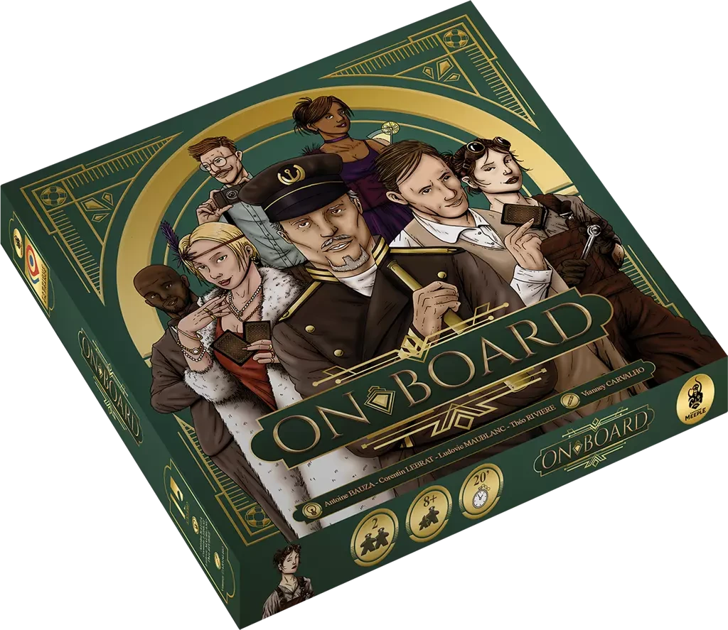 C’est ce que firent 300 passagers, en 2019, en embarquant pour une croisière jeux ! Et que trouvèrent-ils en cadeau de bienvenue, dans leur cabine, un jeu de société pour deux, nommé Bienvenue à bord. Conçu par la team Kaedema, composée de talentueux créateurs de jeux (Antoine Bauza, Corentin Lebrat, Ludovic Maublanc et Théo Rivière), ce jeu a tellement plu que l’éditeur, Capitaine Meeple a décidé d’en faire une version destinée aux magasins de jeux, On board?! Chaque joueur est le capitaine d’un bateau et tente de satisfaire au mieux ses voyageurs. À tour de rôle, on retourne 3 cartes, placées en un tas de deux et une carte seule. L’adversaire choisit lequel des deux paquets il prend, puis c’est lui qui pioche et ainsi de suite. Les cartes cabine vous permettent d’ouvrir des cabines en 1re, seconde ou troisième classe, et d’améliorer les cabines avec de belles vues, un bar, etc. Les cartes Passagers amènent des voyageurs à installer dans les cabines, mais respectez leurs désirs où vous aurez des clients mécontents?! Au fil de la partie, vous cochez les cases sur votre feuille de bord, tout en essayant de remplir vos objectifs. Toutes les 5 cartes, une étape permet de faire un décompte choisi. À la fin de la partie, le joueur possédant le plus de points l’emporte.