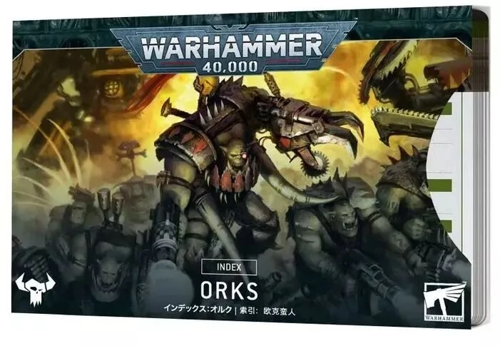 – 3x Cartes d’Index orks, détaillant les règles d’armée de la faction et le Détachement Tribu Waaagh!