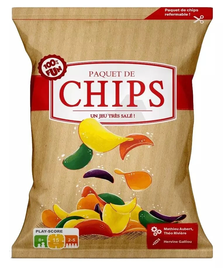 Paquet de Chips est un jeu d’ambiance dans lequel, à chaque manche, vous pariez sur les chips qui seront piochées. Choisissez les bonnes cartes ! Certaines vous feront gagner des points… et d’autres en perdre.