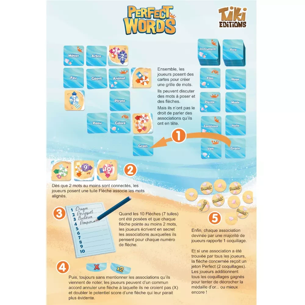 Les mots fléchés coopératifs ! Ensemble, créez une grille de mots fléchés. Essayez de construire les associations de mots les plus évidentes pour tous. Puis devinez les associations fléchées ! Chaque association trouvée par la majorité des joueurs rapporte des points au groupe. Tentez de décrocher la médaille d’or !