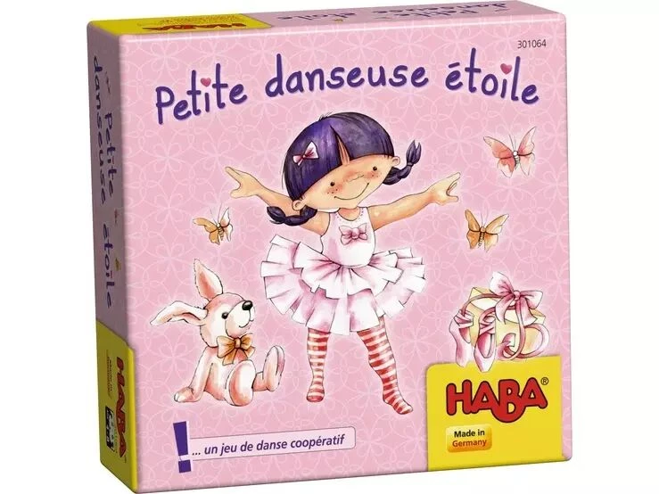 Contenu: 1 ballerine en bois, 24 cartes de mouvement, 1 règle du jeu.