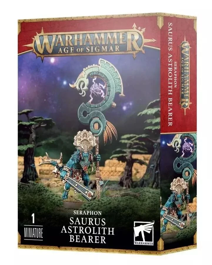 Les Porteurs d’Astrolithe Saurus sont des guerriers marqués par le destin et nés avec un instinct naturel pour la recherche et la mise au jour de reliques de dieux disparus. Les astrolithes qu’ils portent sont des canaux pour la puissance d’Azyr, des totems ophidiens torsadés enveloppant un orbe de célestite flottant. Les Séraphons proches de ces icônes combattent plus vaillamment, renforcés par les énergies célestes qui irradient de l’artéfact.