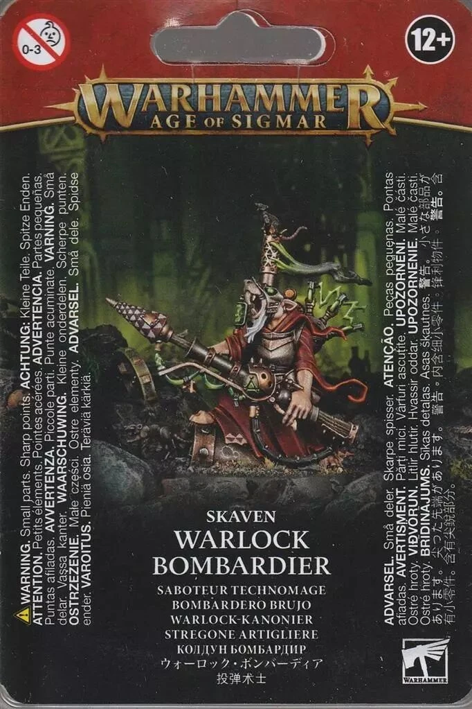 Mi-sorcier, mi-artillerie, tout en ingéniosité skaven, le Warlock Bombardier est un formidable Héros de soutien pour votre armée skaven. Idéal pour appuyer des Warp Lightning Cannons, des Stormfiends et des Warplock Jezzails, le Warlock Bombardier volatilise vos ennemis (et parfois lui-même) à la fusée funeste, tout en insistant avec ses éclairs pour faire bonne mesure. Si vous aimeriez jouer un des Héros skavens les plus imprévisibles (et mortels!), cette figurine est faite pour vous.