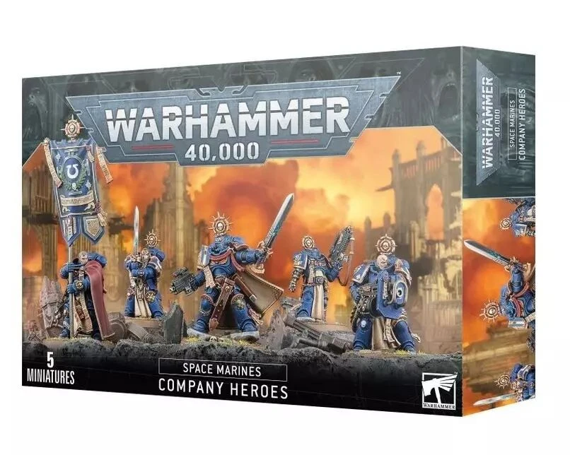 Ce kit plastique permet d’assembler un Capitaine Space Marine et quatre Héros de la Compagnie pour l’accompagner au combat. Vous pouvez armer le Capitaine avec un bolter de maître, un pistolet à plasma ou un pistolet néo-volkite dans une main, et avec un gantelet énergétique ou une épée énergétique dans l’autre. Sa suite contient un Champion de Compagnie armé d’une épée énergétique à deux mains, un Doyen brandissant une bannière ornementée, et deux Vétérans de Compagnie portant des armes de maître: l’un un fusil bolter, l’autre un bolter lourd.