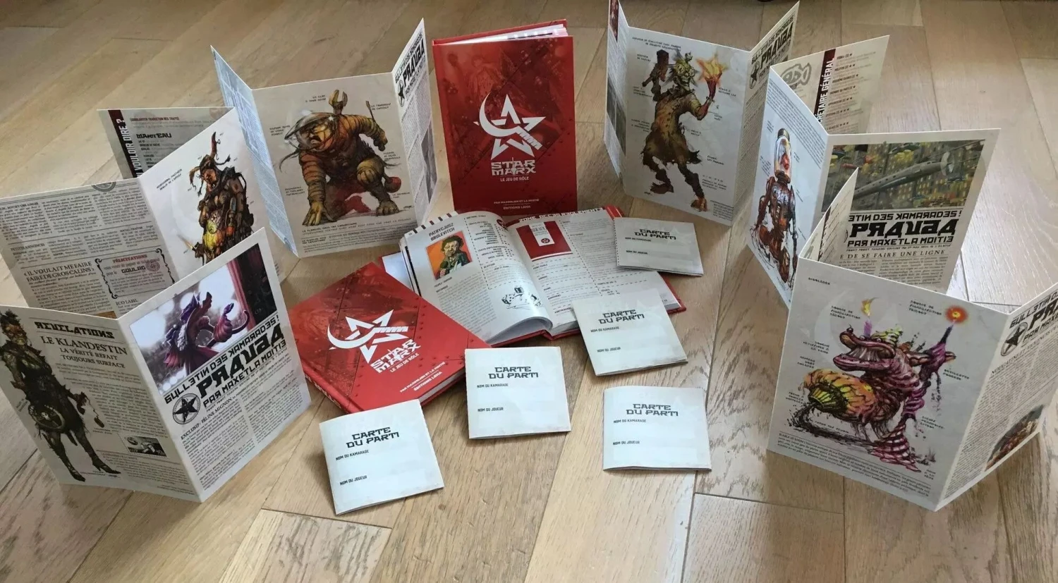 RED, un système alternatif de règles, où il faut empiler des bouchons, pour jouer à Star Marx à l’apéro, à quinze autour de la table s’il le faut, le tout accompagné d’un scénario pour mettre ces règles en pratique ;