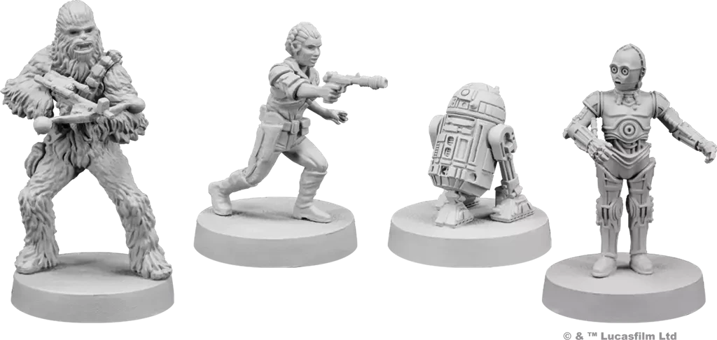 37 figurines en plastique (dont Leia, Chewbacca, C-3PO et R2-D2 !), 15 cartes Unité, 16 cartes Commandement, 33 cartes Amélioration, 2 plaquettes de pions divers, 1 feuillet d’instructions