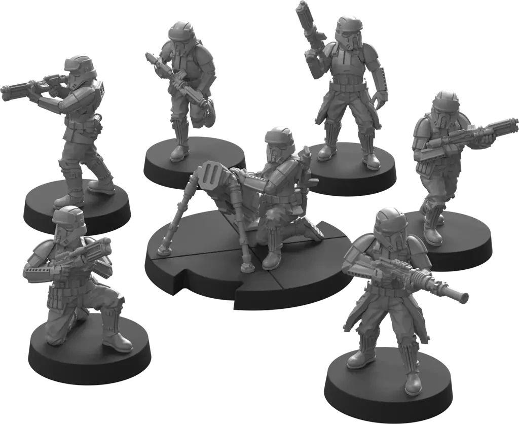 Les Shoretroopers sont recrutés parmi l’élite des escadrons de Stormtroopers. Rompus aux combats dans des environnements exotiques, ils sont également entraînés à supporter les conditions d’une guerre de tranchées. Ce sont des experts, capables de contrer la guérilla des Rebelles.