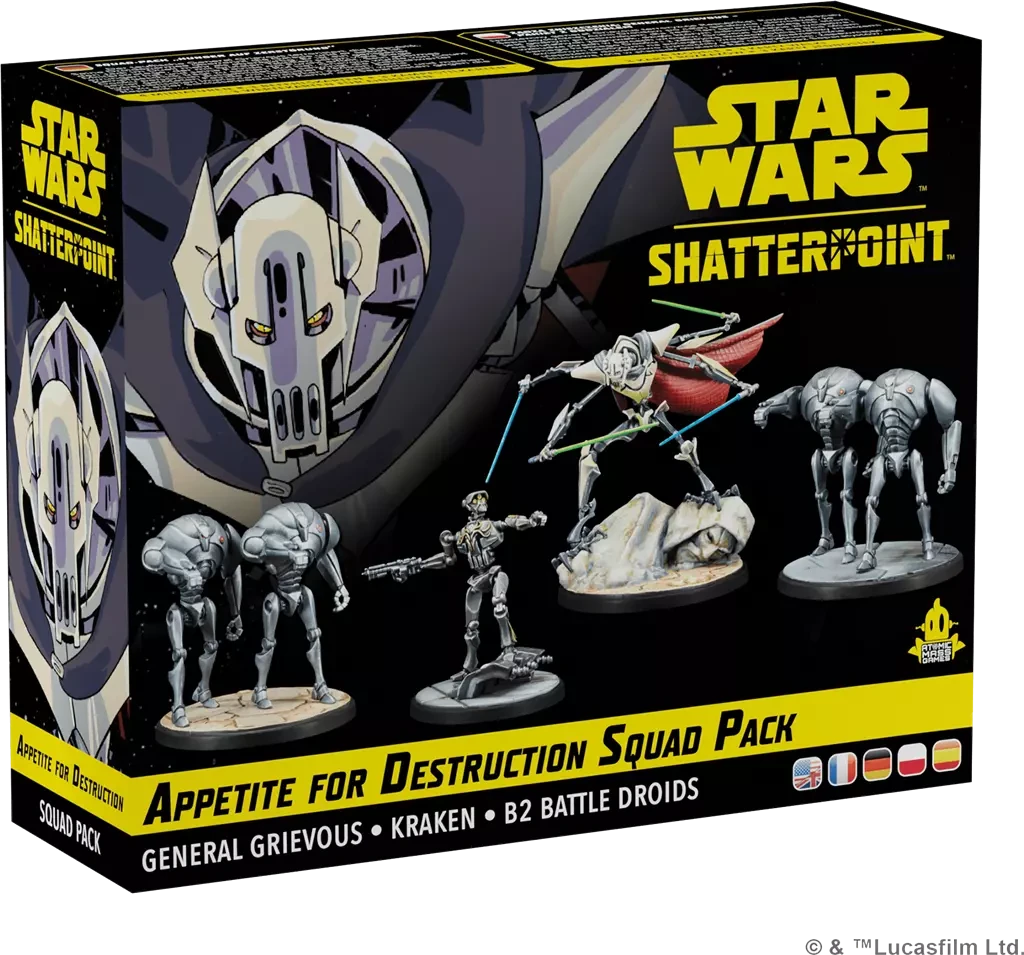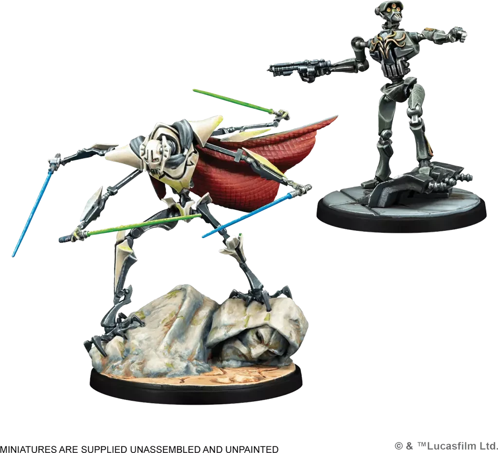 4 figurines (Général Grievous, Kraken Super Droïde tactique, Droïdes de combat B2), 3 cartes Statistiques, 3 cartes Postures de combat, 3 cartes Ordre.
