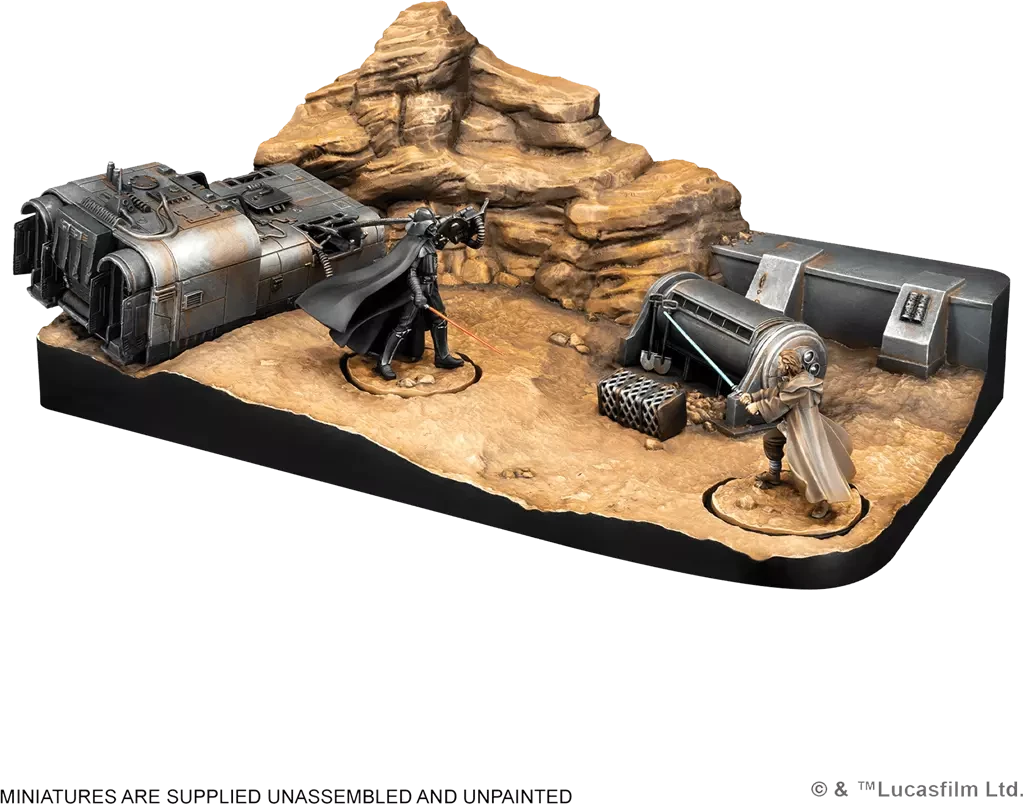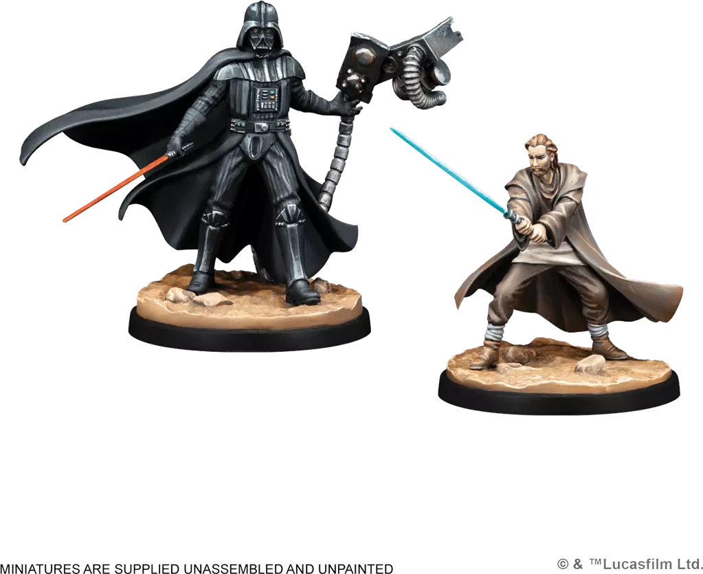 Star Wars Shatterpoint : Tu ne peux pas fuir contient deux figurines non peintes à monter, 1 décor de présentation, 2 cartes posture de combat, cartes ordre, 2 cartes statistiques.
