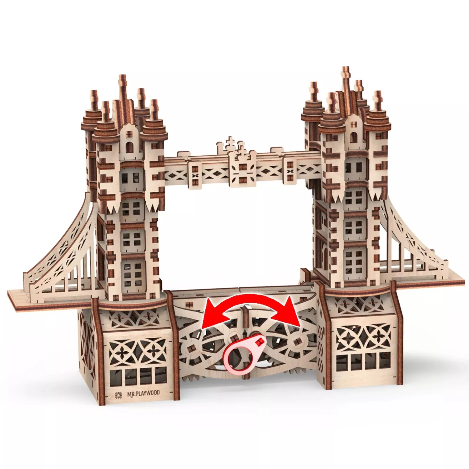 Dans sa version petite taille, assemblez le Tower Bridge puis actionnez le pont levis grâce un ingénieux système d’engrenages !