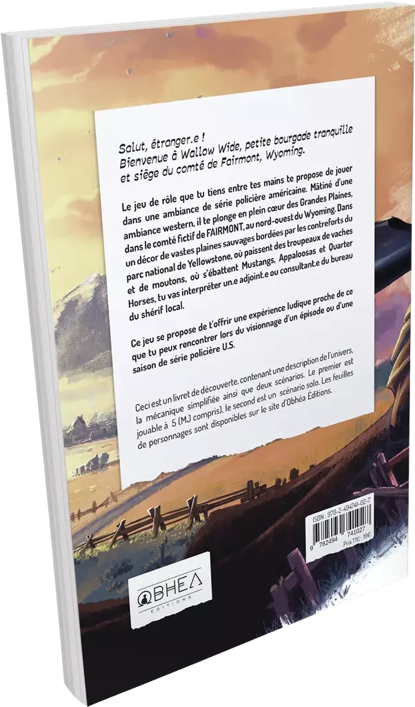 Ce jeu de rôle propose de jouer dans une ambiance de série policière américaine. Mâtiné d’une ambiance western, il plonge en plein cœur des Grandes Plaines, dans le comté fictif de Fairmont, au nord-ouest du Wyoming.